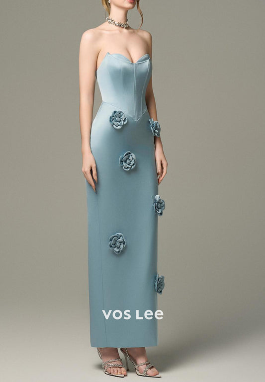 Sweetheart Ruched Floral Embellished Mermaid Ankle-Length Evening Dresses with Split