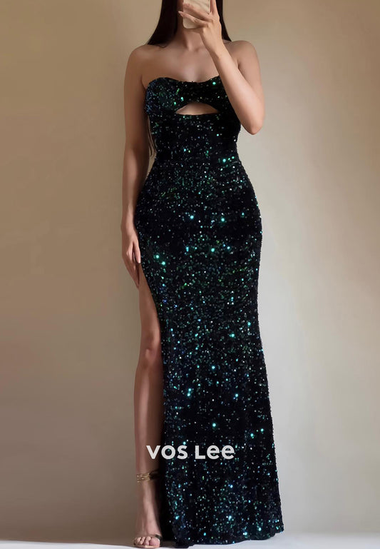 Couture Fully Sequined Sweetheart Strapless Mermaid Evening Dresses with Side Split