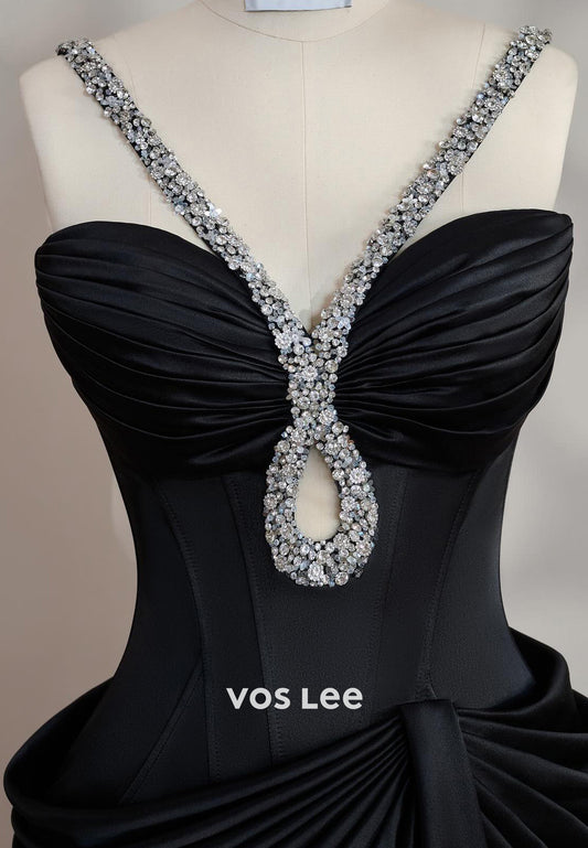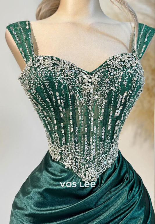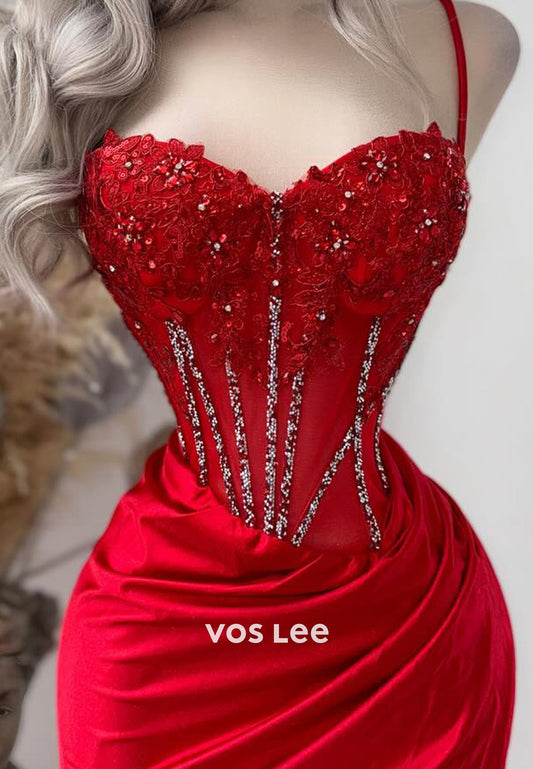 Sexy Spaghetti Straps Rhinestone Pleated Sweetheart Mermaid Evening Dresses