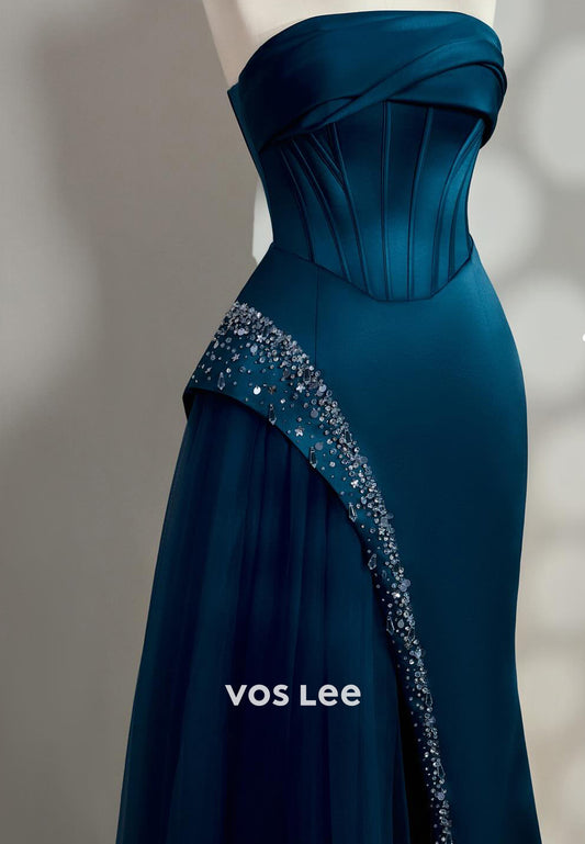 Classic & Timeless Strapless Pleated Mermaid Prom Dresses with High Split
