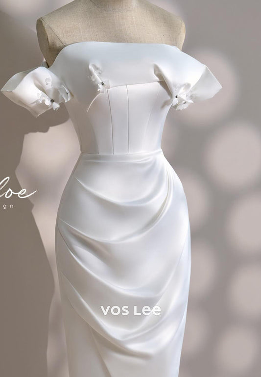 Simple Off the Shoulder Floral Embellished Pleated Mermaid Evening Dresses