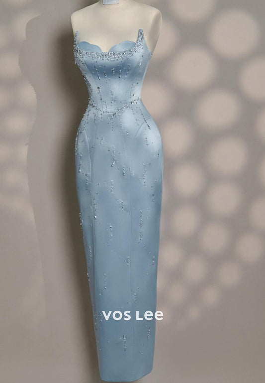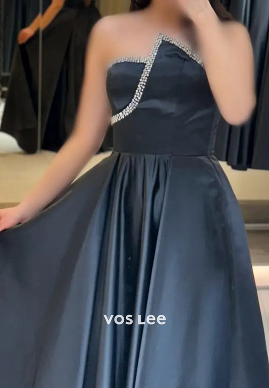 Simple & Casual A-Line Strapless Rhinestone Floor-Length Evening Dresses