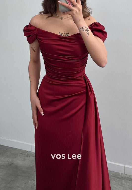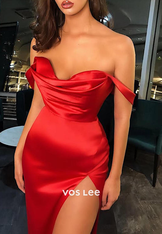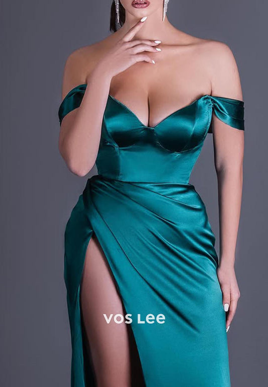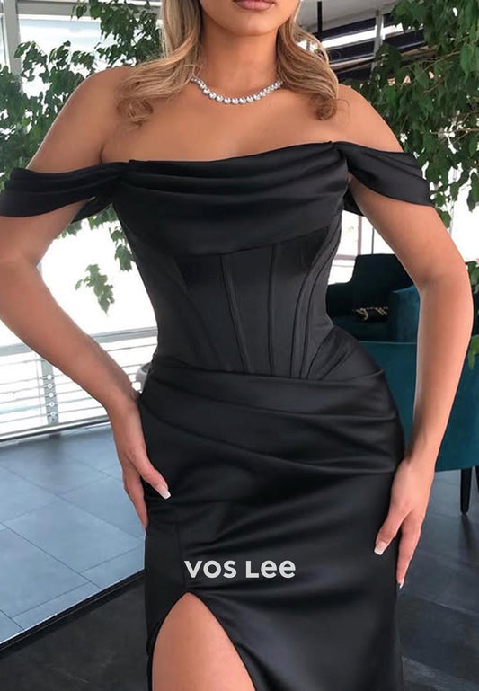 Classic & Timeless Off-Shoulder Pleated Prom Dresses Formal Dresses with Side Split
