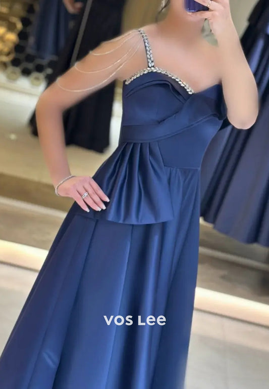 Sexy A-Line Sweetheart Pleated Rhinestone Spaghetti Straps Evening Dresses