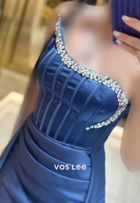 Chic & Modern One Shoulder Rhinestone Mermaid Prom Dresses with High Split
