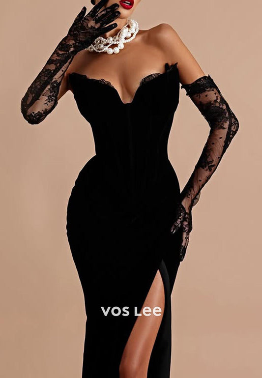 Couture & Ornate Sweetheart Mermaid Prom Dresses with High Split with Long gloves