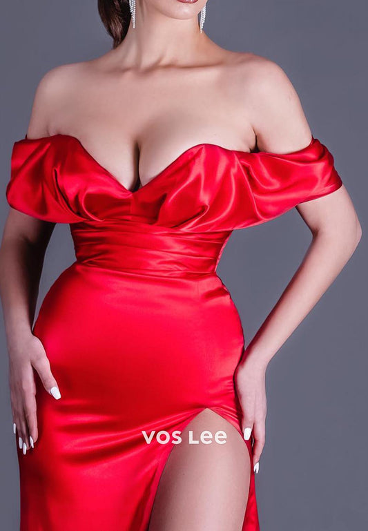 Elegant & Luxurious Off-Shoulder Mermaid Holiday Prom Dresses with High Split