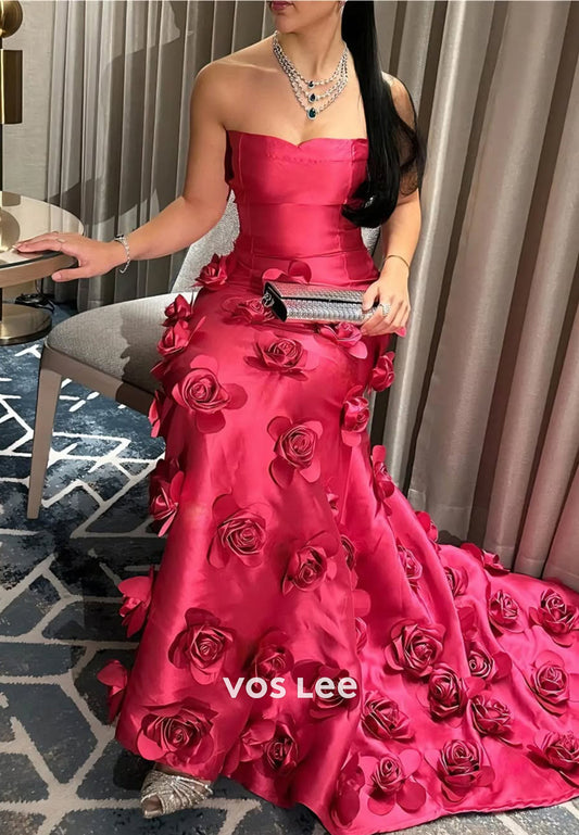 Couture Sweetheart Floral Embossed Mermaid Evening Dresses with Court Train