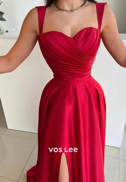 A-Line Pleated Sweetheart Spaghetti Straps Evening Dress Prom Dresses with High Split