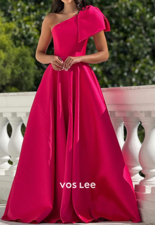 Classic A-Line One Shoulder Bowknot Pleats Prom Dresses with Side Split
