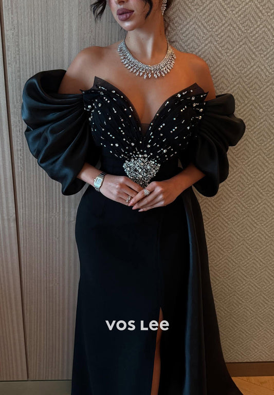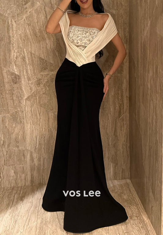 Sparkling Black Off the ShoulderPleated Mermaid Floor-Length Evening Dresses 2025