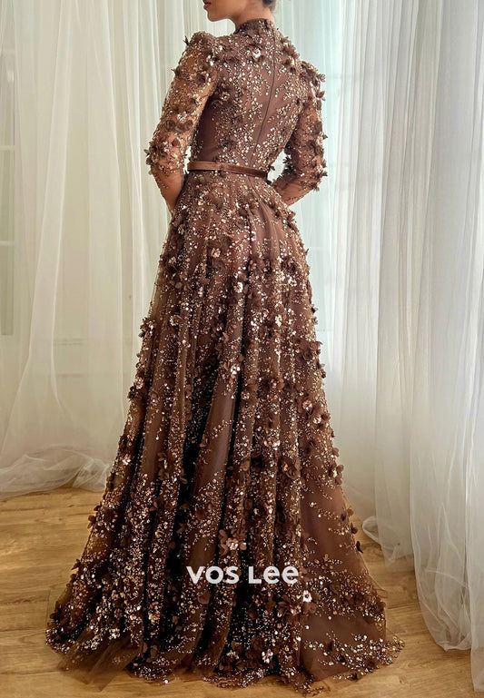 Elegant Sequins pearls Evening Dress with Long Sleeves
