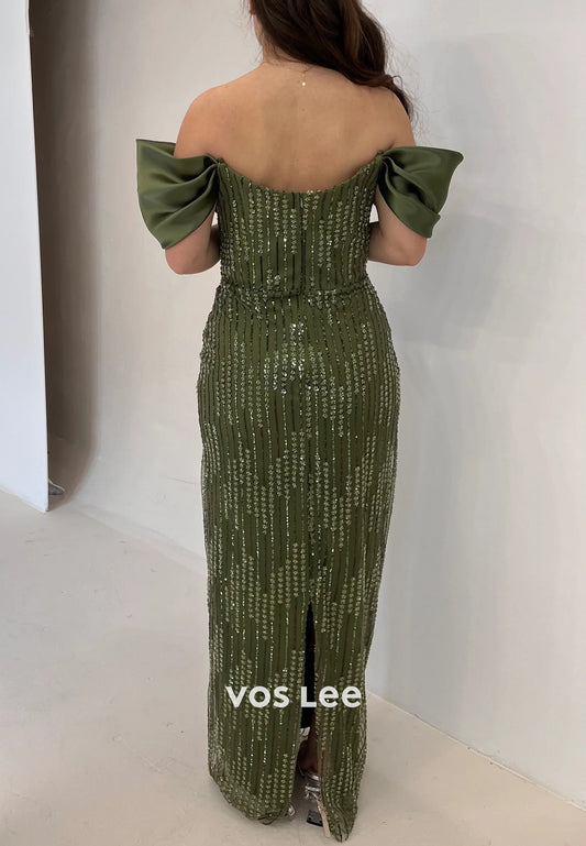 Elegant Off the Shoulder Bead Sequins Lace Long Sleeve Sheath Evening Gowns
