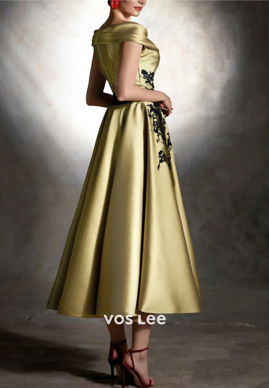 One shoulder A-Line Satin Evening Gown Split Pleat Dress