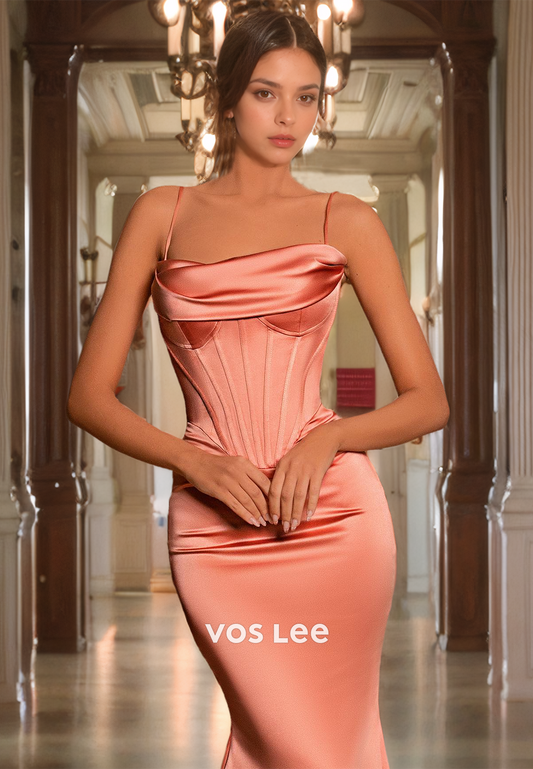 Elegant Mermaid Satin Spaghetti Straps Prom Dresses Long Floor Length Evening Party Dress
