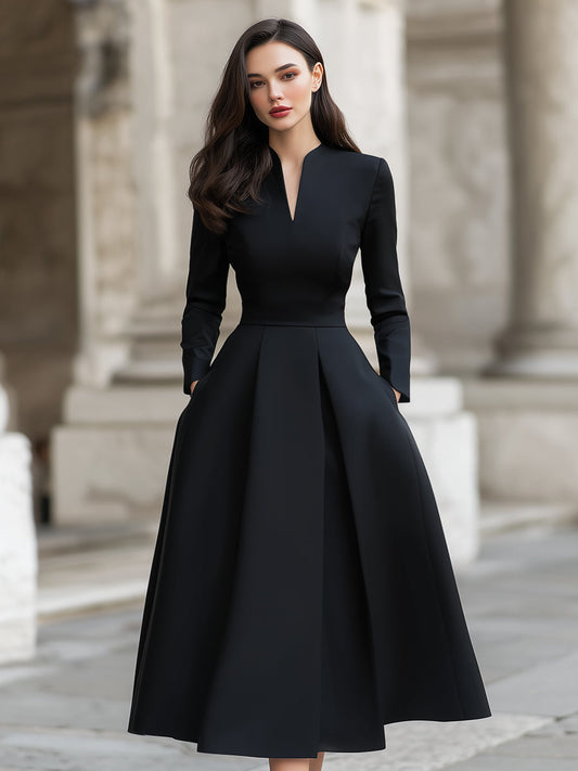 Elegant Structured V-Neck Midi Dress