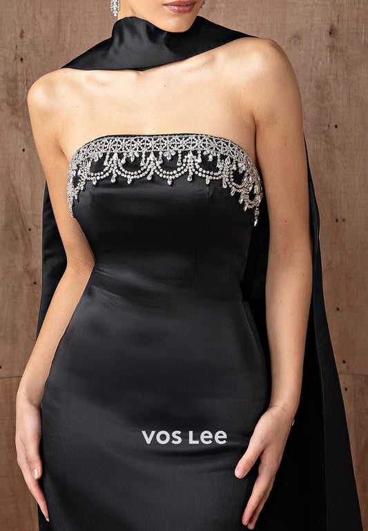 Simple & Casual Strapless Rhinestone Embellished Mermaid Prom Dresses