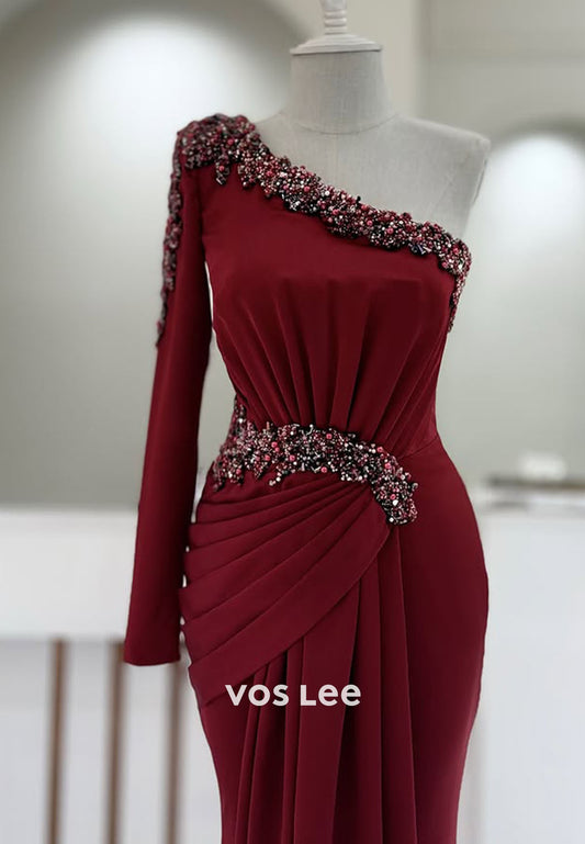 Sparking One Shoulder Crystals Bead Long Sleeve Sheath Evening Gowns