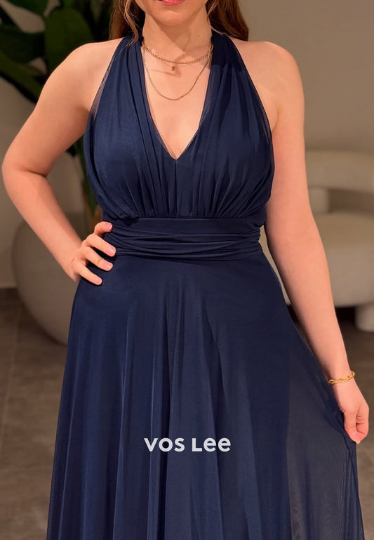 Sexy and Sleek A-Line Halter Pleated Floor-Length Evening Dresses