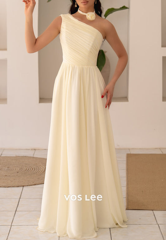 Sexy and Sleek A-Line One Shoulder Pleated Long Prom Dresses