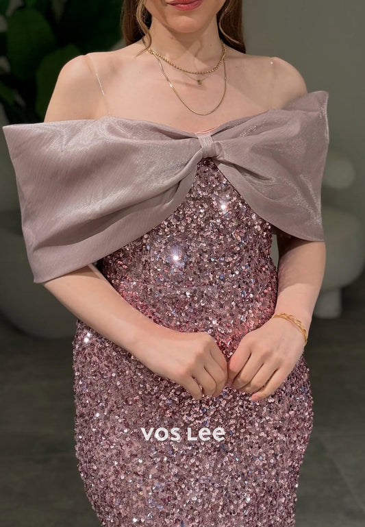 Bowknot Off the Shoulder Fully Sequined Mermaid Evening Dresses