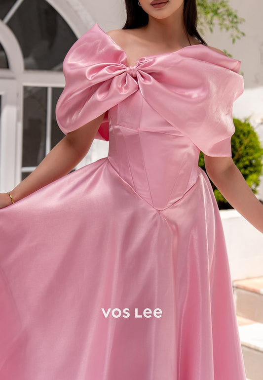 A-Line Off the Shoulder Bowknot Pleated Floor-Length Evening Dresses