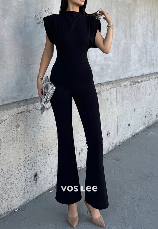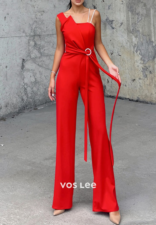 Asymmetrical Neck Satin Pleated Jumpsuit