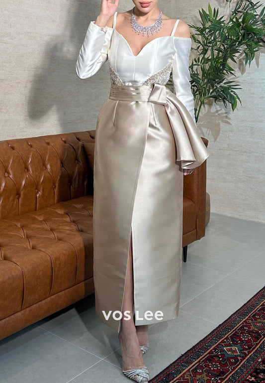 Spaghetti Straps Sweetheart Beading Ankle-Length Sheath Evening Dresses