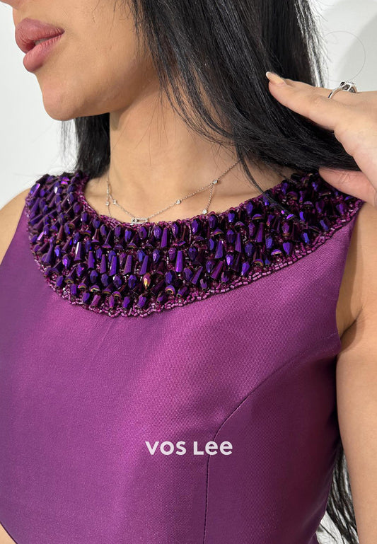 A-Line Scoop Beading Embellished Ruched Ankle-Length Evening Dresses