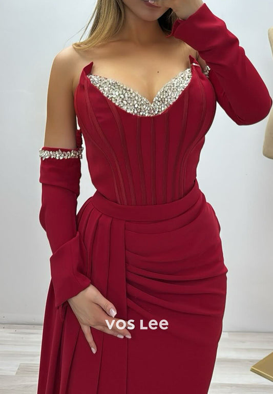 Strapless Sweetheart Rhinestone Embellished Pleated Mermaid Evening Dresses