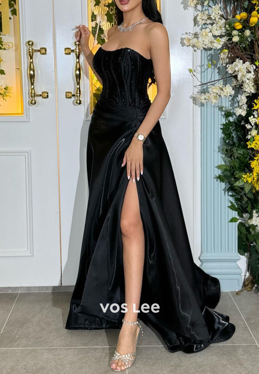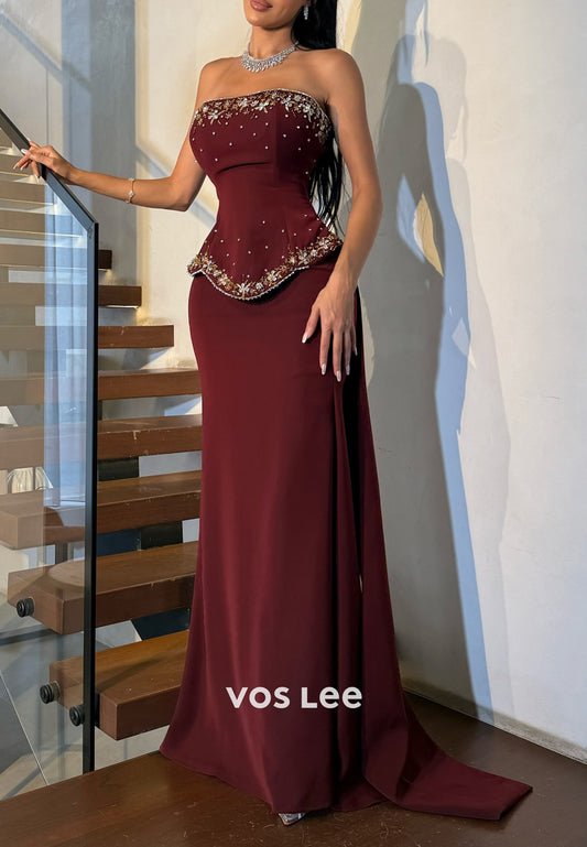 Sexy & Hot Strapless Floor-Length Mermaid Evening Dresses with High Split