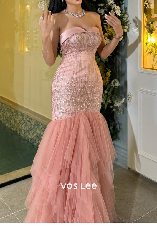Sparkle & Shine Strapless Floor-Length Mermaid Evening Dresses Party Dresses