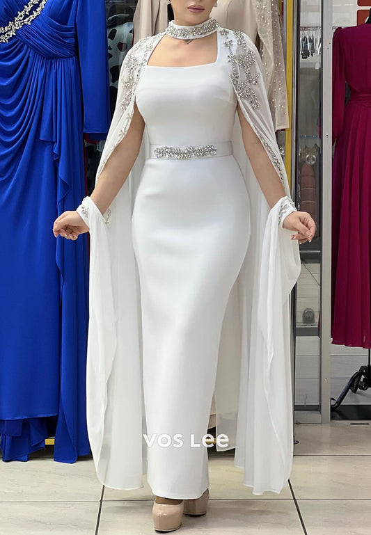Empire Waist Square Rhinestone Embellished Ankle-Length Mermaid Evening Dresses