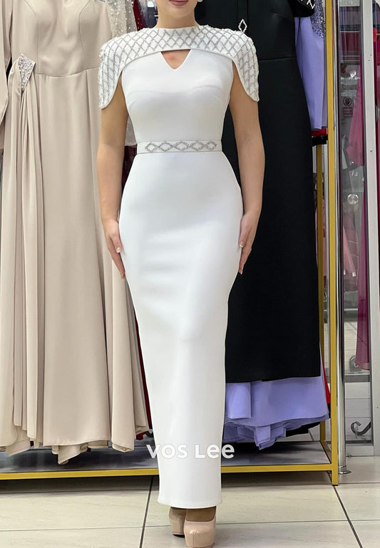 Short Sleeve Scoop Rhinestone Embellished Ankle-Length Mermaid Evening Dresses