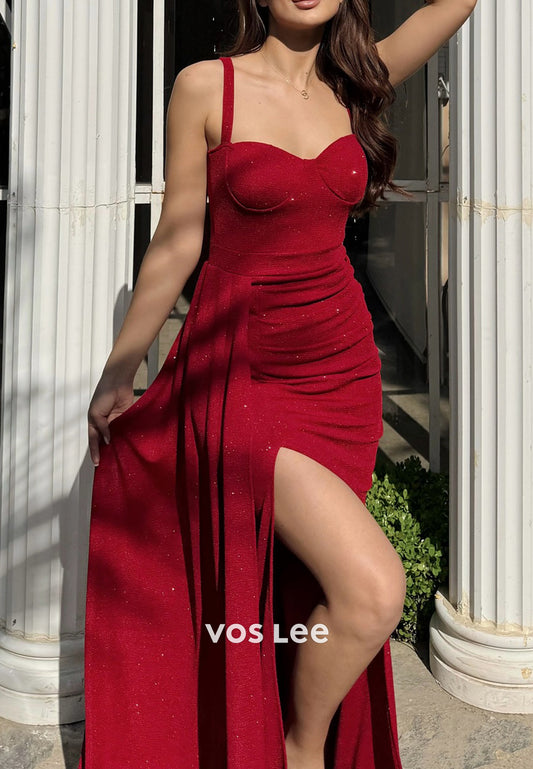 Sparkling Spaghetti Straps Sweetheart Mermaid Evening Dresses with Sweep Train