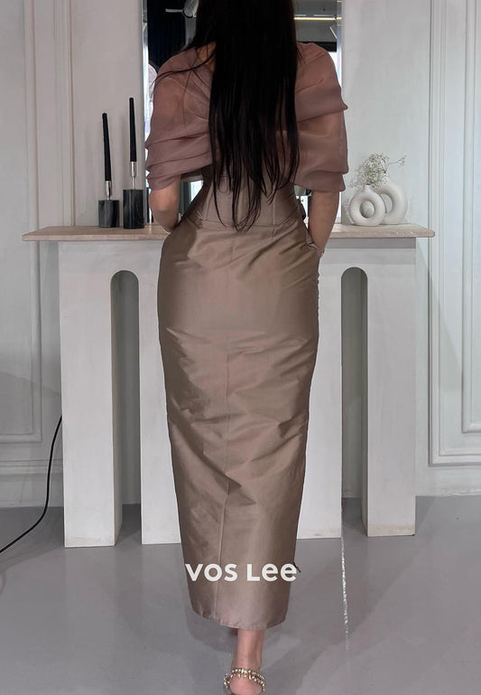 Long Sleeve Square Ankle-Length Pleated Mermaid Evening Dresses with Side Split