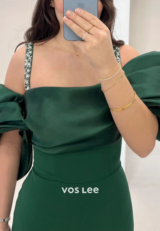 Short Sleeve Spaghetti Straps Rhinestone Pleated Floor-Length Mermaid Evening Dresses