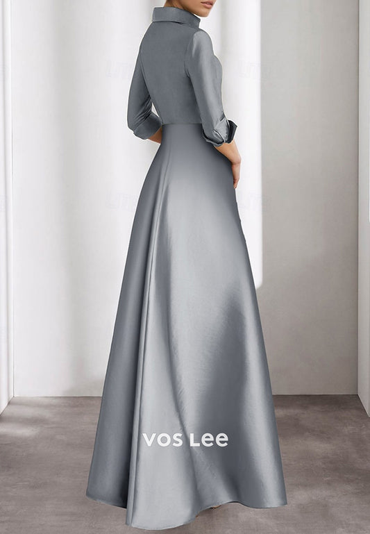 A-Line 3/4 Sleeve Appliques Pleated Evening Dresses Mother of Bride Dresses with High Split