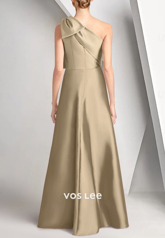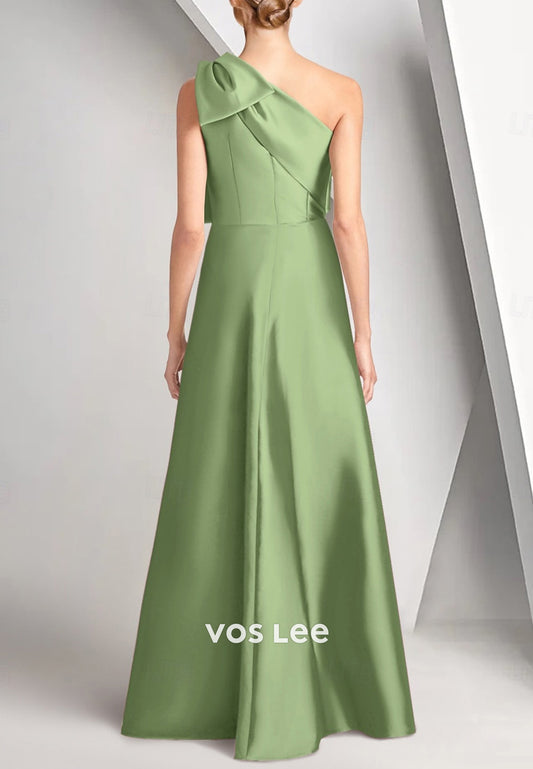 Simple & Casual One Shoulder Bowknot Pleated Floor-Length Mother of Bride Dresses