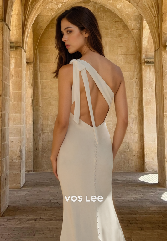 Unqiue Sheath One Shoulder Lace Up Side Split Coyrt Train Wedding Dress