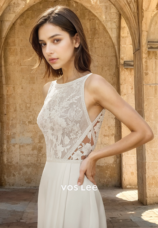Ornate V Neck Illusion Sleevelss Backless Lace Appliques Sequins Wedding Dress