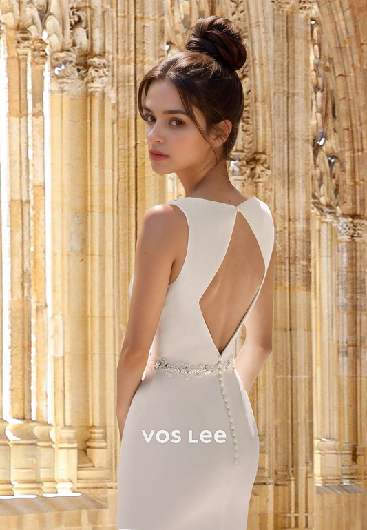 Gorgeous Column Bateau Sleeveless Backless Satin WEedding Dress with Split