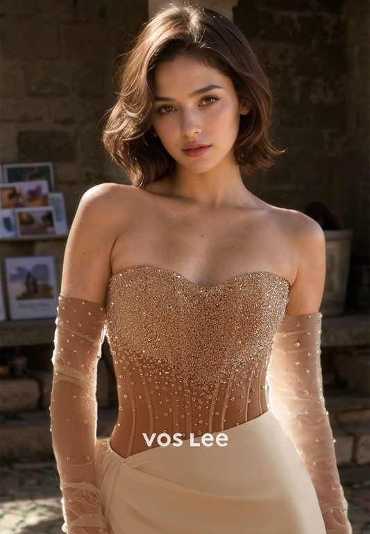 Vintage Sweetheart Sheath Long Sleeves Beaded Sequins High Split Wedding Bride Dress