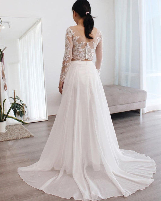 Two Piece Wedding Dress Chiffon Split Lace Sleeves