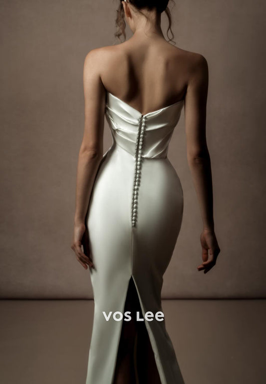 Pleated Strapless Floor-Length Beach Mermaid Wedding Dresses with High Split