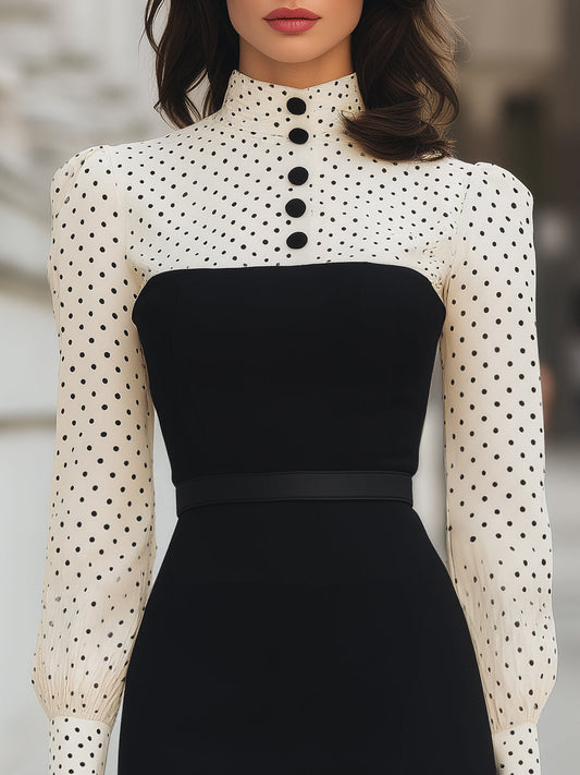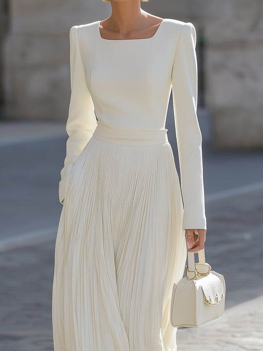 Ivory Long-Sleeve Dress With Pleated Midi Skirt