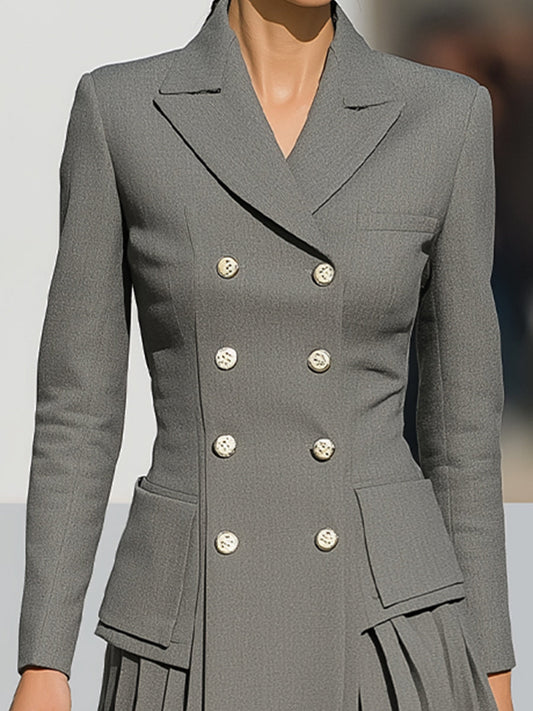 Stylish Double-Breasted Blazer Dress With Detachable Pleats