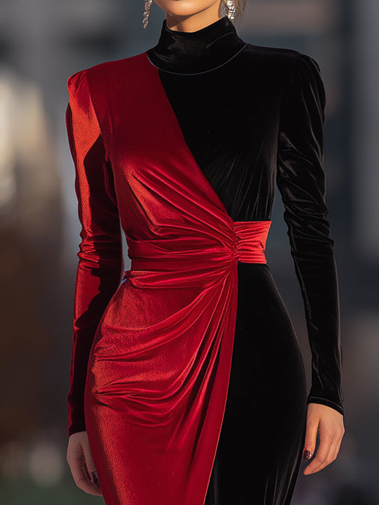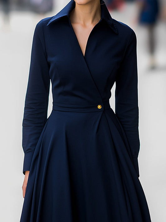 Chic Asymmetrical Wrap Midi Dress With Side Zip