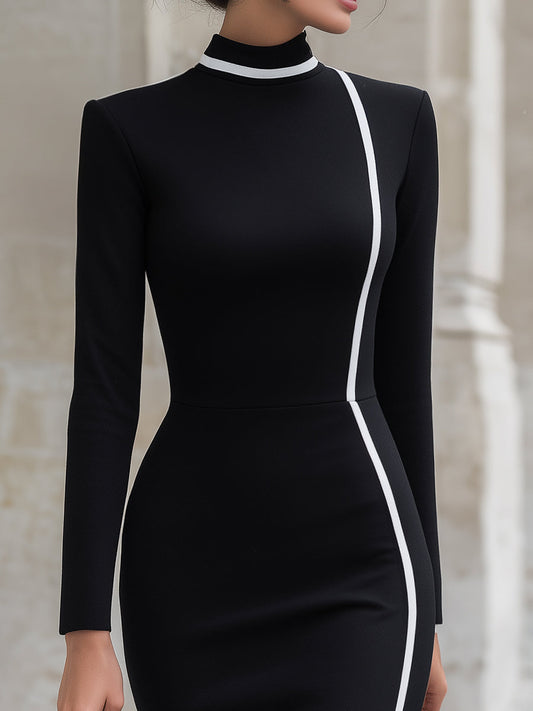 Tailored Zip-Up Long Sleeve Bodycon Dress With Contrast Trim