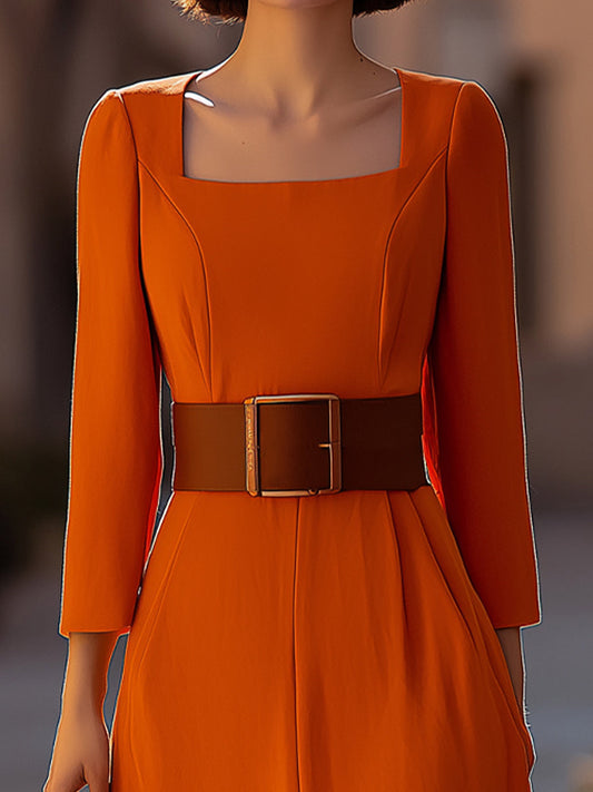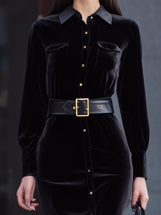 Sophisticated Black Pencil Dress With Notched Neckline And Belt
